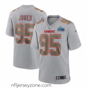 Premium Toddler Kansas City Chiefs 95 Chris Jones Grey Super Bowl LVII Patch Atmosphere Fashion Stitched Game Jersey