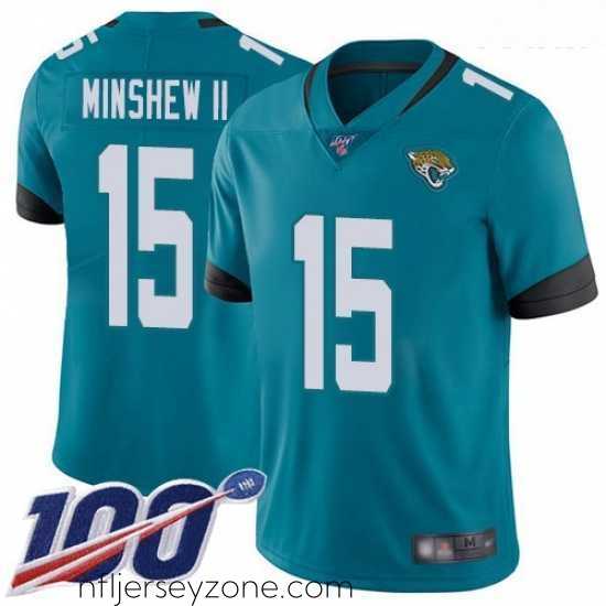 Exceptional Jaguars #15 Gardner Minshew II Teal Green Alternate Stitched Football 100th Season Vapor Limited Jersey Time sensitive offer for overseas customers Don’t let this slip through your fingers Order now!