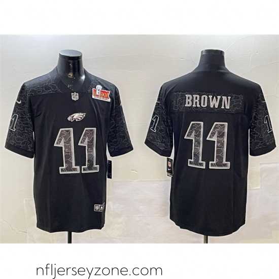 Luxurious Philadelphia Eagles 11 A J Brown Black 2025 Super Bowl LIX Patch Reflective Vapor Untouchable Limited Stitched Football Jersey